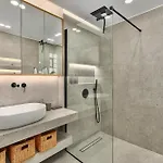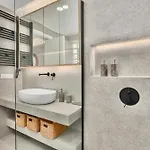 Az apartman vendégei élvezhetik a hajszárító és háziköntösök kényelmét a fürdőszobában.